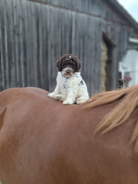 Im April 2026, wenn alles klappt, bekommt unsere Erna wieder kleine reinrassige Lagottis, meine Zwerge wachsen bei mir im Wohnzimmer auf mit allen Geräuschen im Haushalt, Kinder Katzen alles vorhanden, die Zwerge lernen soviel wie möglich kennen. In Facebook oder Instagram kann man meinen A-Wurf, B-Wurf und C-Wurf sehen und auch wie sie aufwachsen, die Elterntiere sind natürlich auf Erbkrankheiten untersucht. Bitte telefonisch melden wenn sie ernsthaftes Interesse haben, da es persönlicher ist und auch alle Fragen sofort von beiden Seiten beantwortet werden können.
