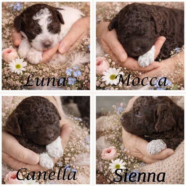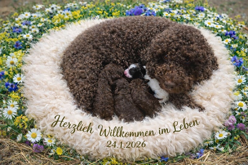 Mit ihren flinken Pfoten, ihrem wachen Blick und ihrem freundlichen Wesen erobern sie jedes Herz im Sturm. Sie gehören vielleicht nicht zu den größten Lagotti, aber sie besitzen ein riesiges Herz, viel Charme und eine große Portion Abenteuerlust.