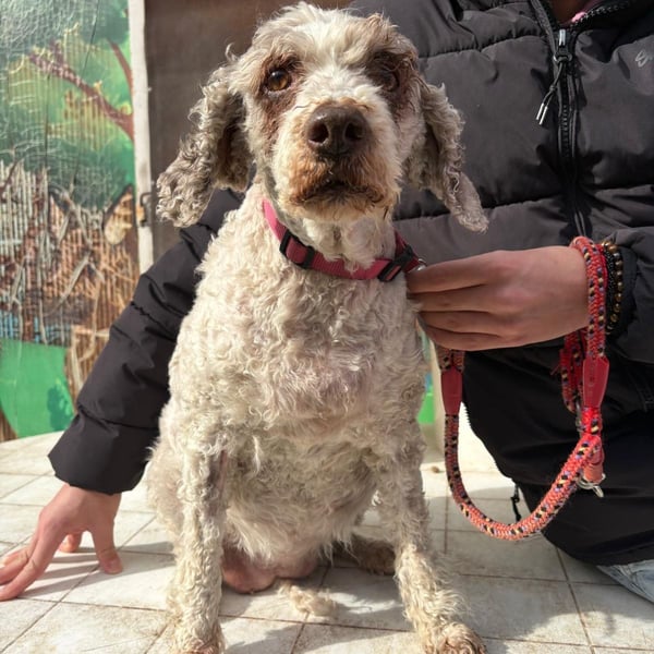 Dana wurde lange Zeit zur Trüffelsuche eingesetzt. Leider werden Lagotti bei dieser Arbeit oft nicht gut gehalten, vergleichbar mit der Situation vieler Jagdhunde in Italien. Margara gelang es schließlich, den Besitzer zu überzeugen, sie abzugeben.