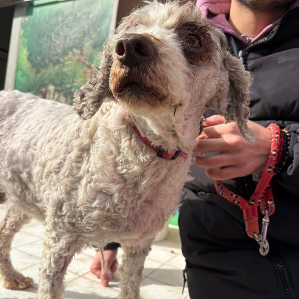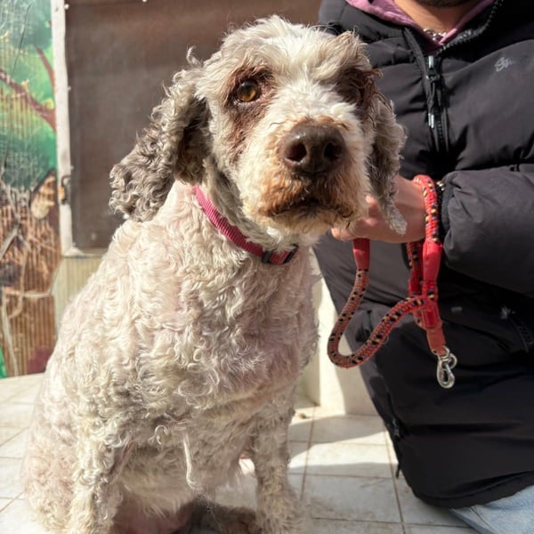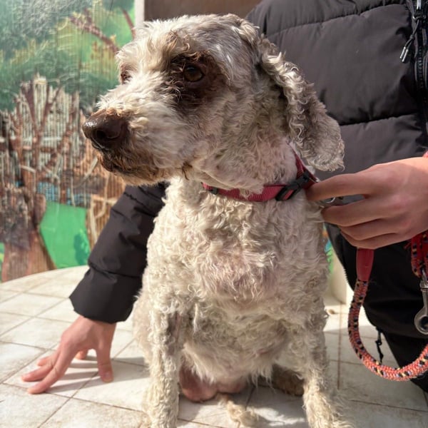 Ihr lockiges Fell war vollständig verfilzt, sodass sie komplett geschoren werden musste. Trotz allem hat sich die noch rüstige ältere Dame ihr sanftes Wesen bewahrt: Dana ist ausgesprochen brav, gehorsam und sehr menschenbezogen. Außerhalb des Tierheims kann sie frei laufen, bleibt beim Spazierengehen jedoch stets in der Nähe ihrer Bezugspersonen.
