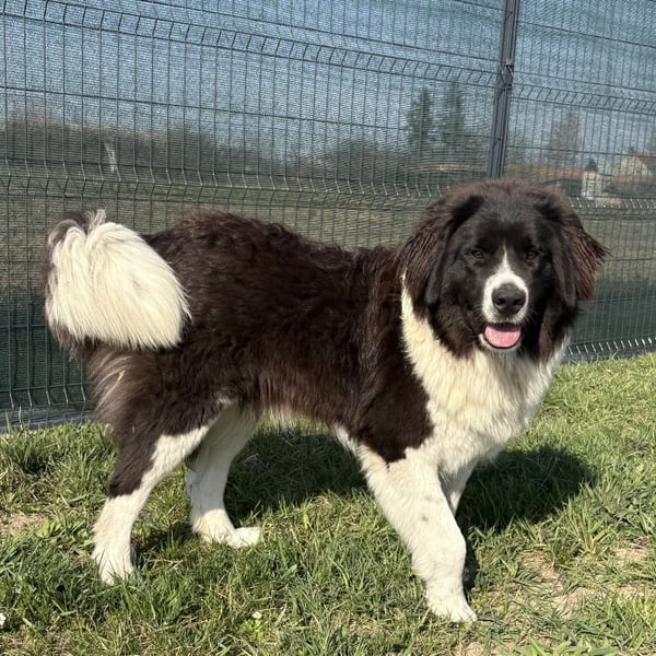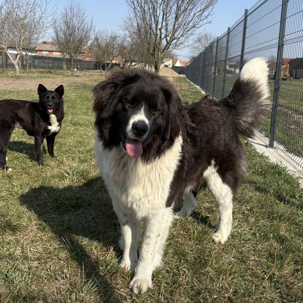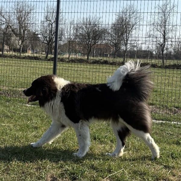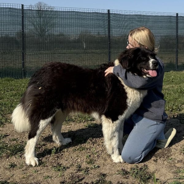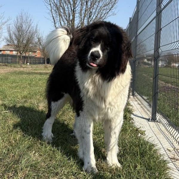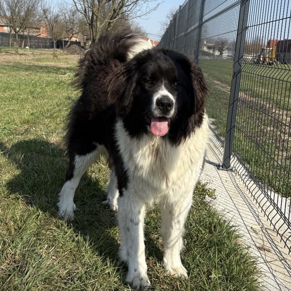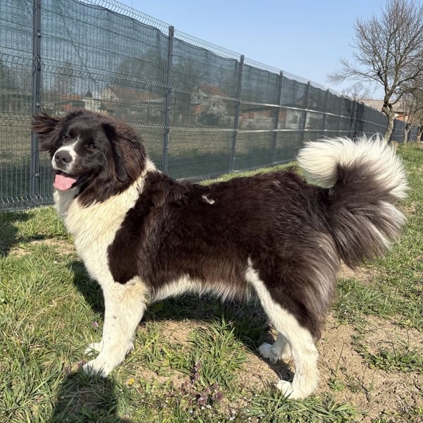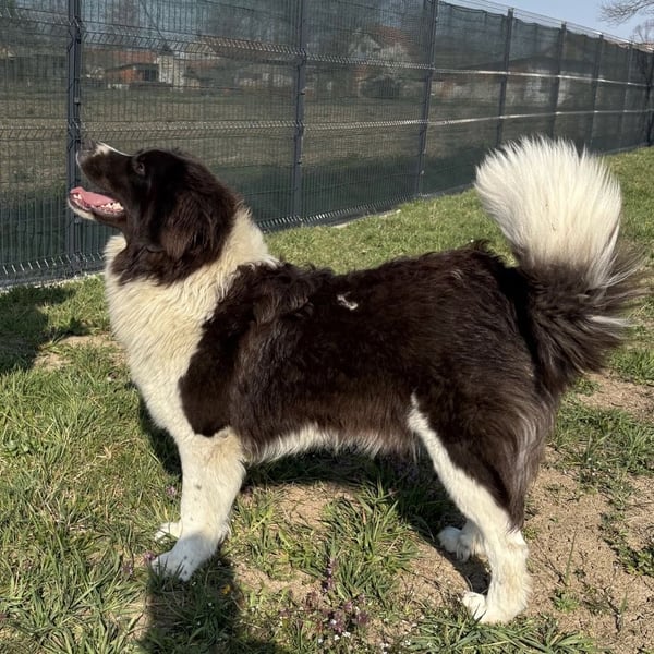 Kura ist ein Mädchen, laut Tierarztschätzung ca. 1 Jahr alt (geb. 06.03.2025). Sie wiegt etwa 35kg und ist ca. 65 cm groß. Vermutet wird ein Tornjak Mischling, ihr Kopf ähnelt aber mehr einen Landseer.