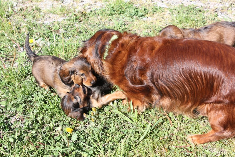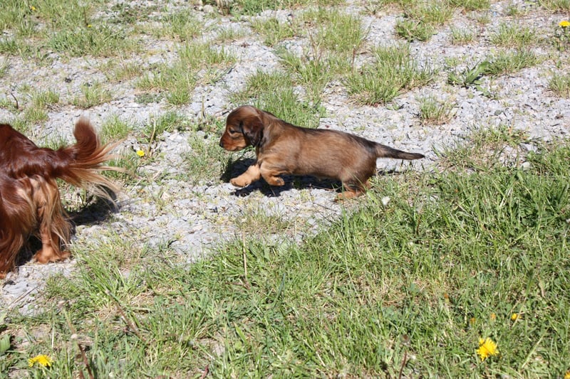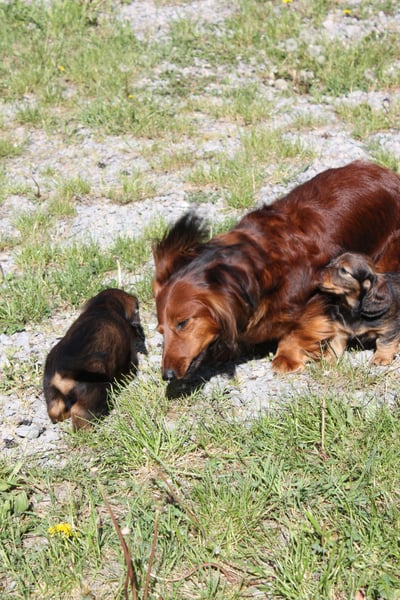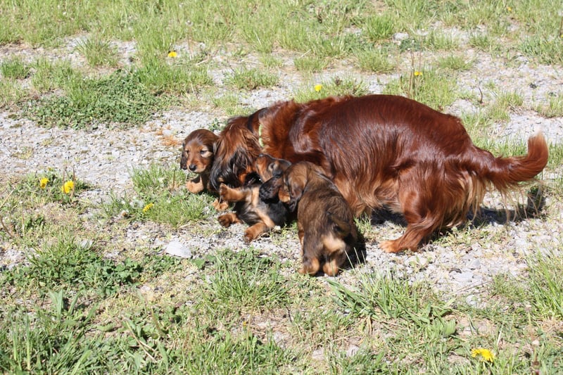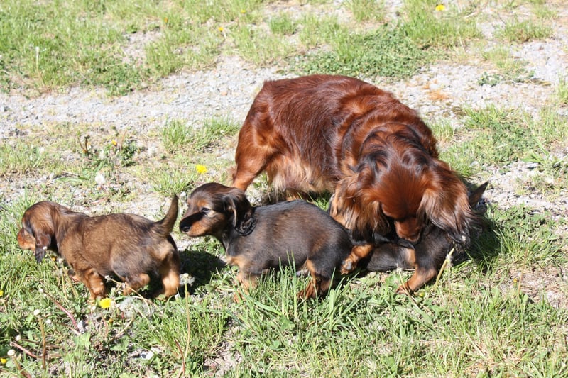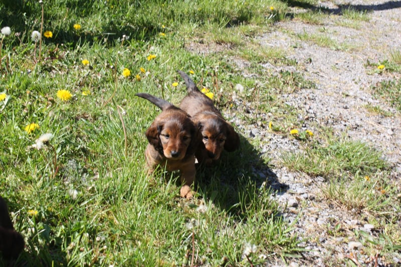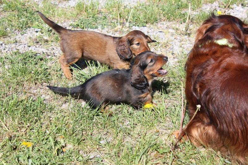 Unsere wunderschönen, roten Langhaardackel (Standard) wachsen aktuell liebevoll mitten im Familienalltag auf und entwickeln sich einfach toll ❤️