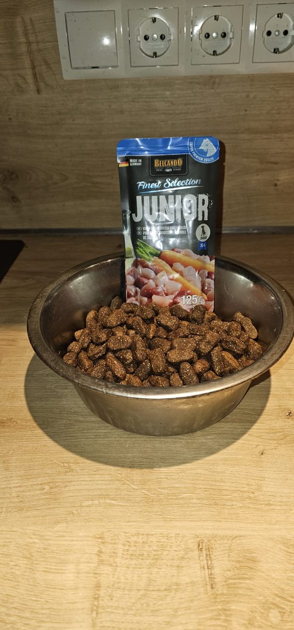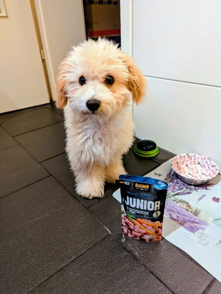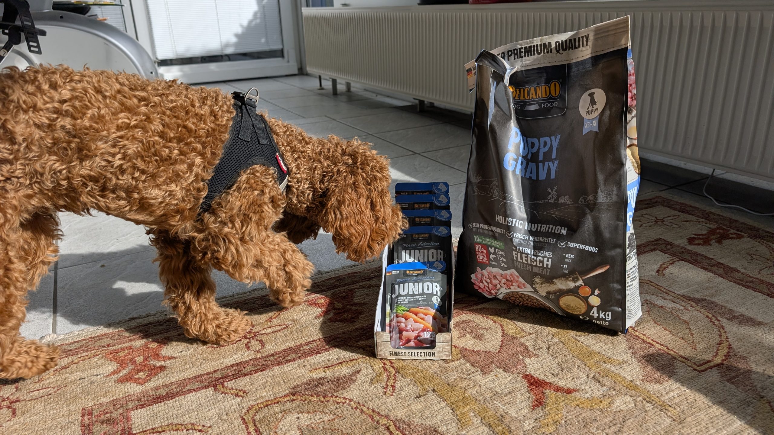 Wir hatten für unsere Kleinpudelwelpin Bella, sieben Monate alt, Produktproben von BELCANDO® Finest Selection Junior in kleinen Tütchen und zusätzlich das Trockenfutter Puppy Gravy.