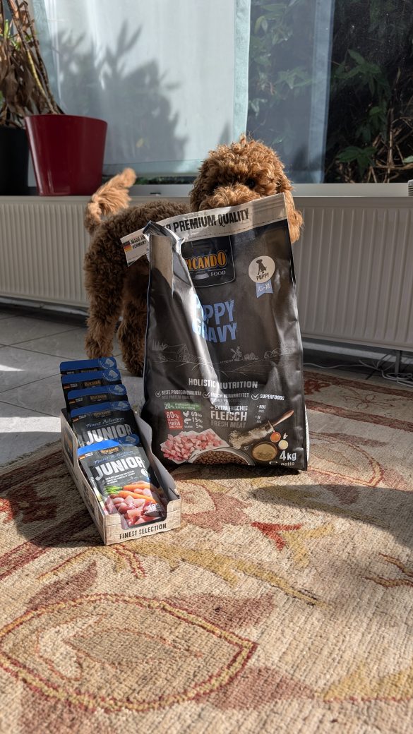 Ich hatte das Glück, von BELCANDO® zwei Produkte für meinen heranwachsenden Maltipoo Lino, der sich derzeit in der Junior-Phase befindet, kostenfrei zum Testen zu bekommen: das Nassfutter Finest Selection Junior Huhn mit Karotten und Lachsöl und das Trockenfutter Puppy Gravy.
