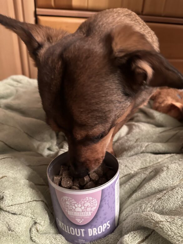 Bei uns begann die Testphase am 23.12.2023, da Neila das Raketen-Zischen an Silvester nicht so gerne hat. So bekam sie tatsächlich 12 der Tierliebhaber Chillout Drops und diese hat sie so geliebt. Neila fand sie sehr schmackhaft und war ganz Jeck danach. Zudem haben die Chillout Drops ein sehr angenehmer Geruch.