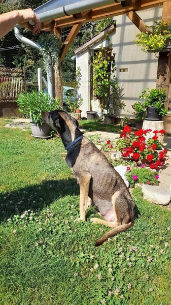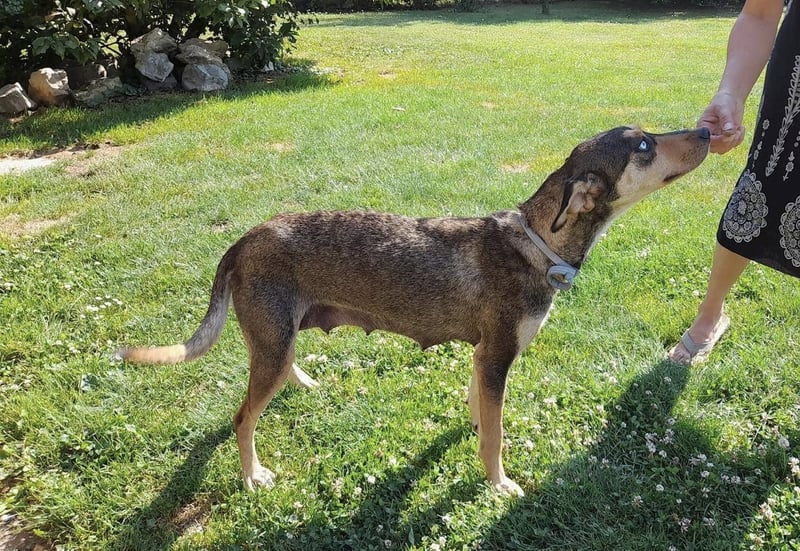 Unsere schöne Kedves hat schon Einiges hinter sich. Im Sommer 2022 wurde sie gemeinsam mit ihren sieben Welpen und einem gebrochenen Bein gefunden. Die kleine Familie wurde in Sicherheit gebracht, die Welpen konnten Alle in liebevolle Zuhause vermittelt werden – und Kedves durfte auf ihrer Pflegestelle bleiben, um zu genesen und Vertrauen zu fassen.