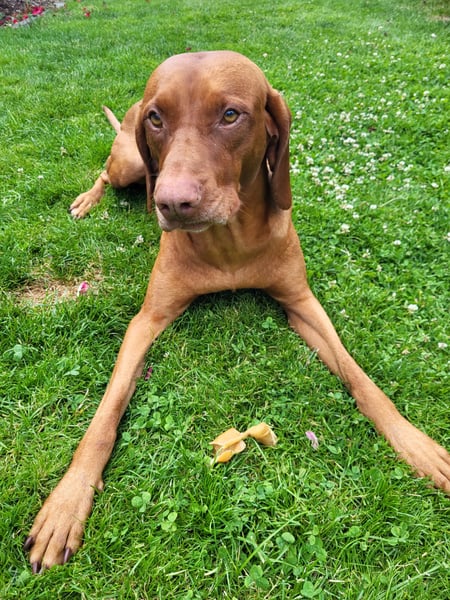 Django ist ein ausgeglichener, aufmerksamer und gehorsamer Rüde. Dank seiner sozialen Ader ist er verträglich mit Allem und Jedem. Mit Artgenossen und Menschen, egal ob klein oder groß, kommt er gut aus. Er ist vizslatypisch verschmust, sucht die Nähe des Menschen und ist sehr folgsam. Spaziergänge, Radtouren, schwimmen am See, alles macht ihm Spaß.