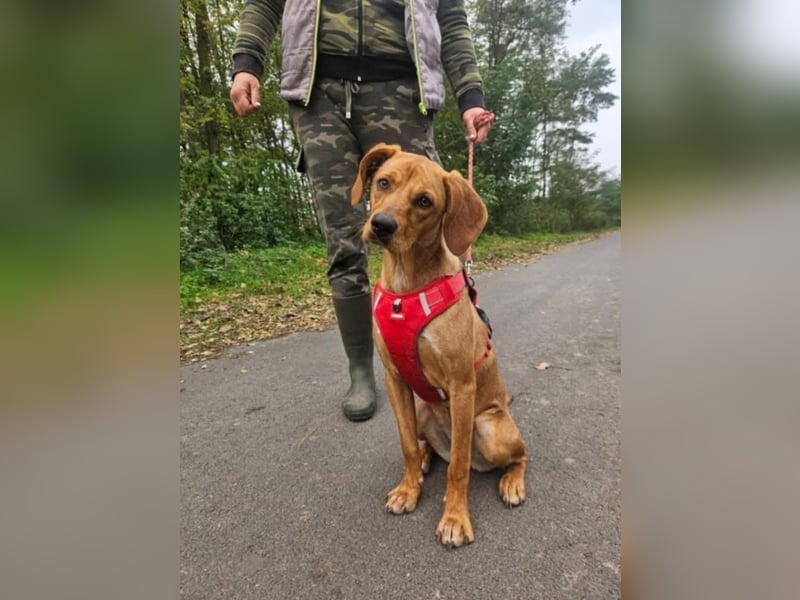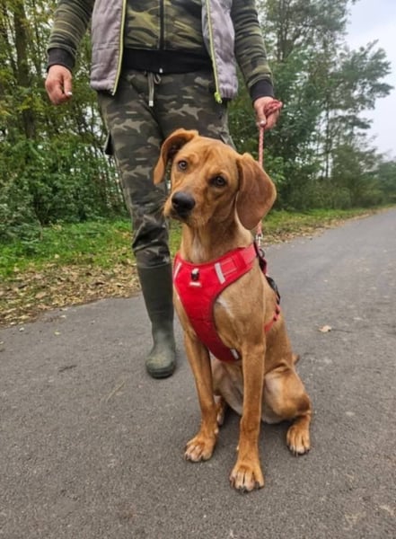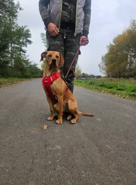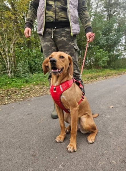Mirtill, geboren ca. im März 2025, ist eine etwa 45 cm große Vizsla-Mix-Hündin, die seit September 2025 in unserem Partnertierheim in Ibrány lebt. Ihr junges Leben begann leider nicht behütet: Mirtill wurde allein auf der Straße gefunden und kam so in Sicherheit zu uns.