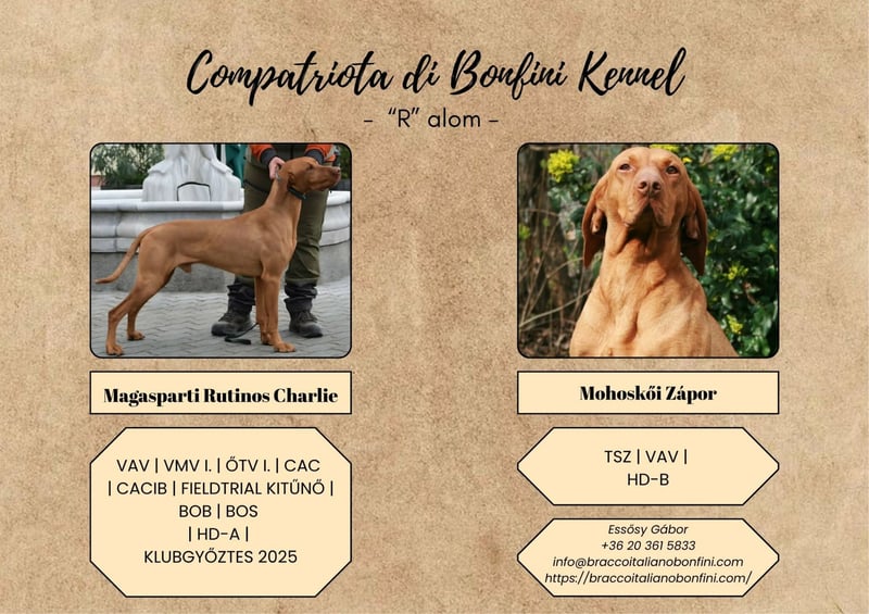 Vater: Magasparti Rutinos Charlie: CACIB, CAC, BOB, BOS, Klubsieger 2025, Field Trial vorzüglich, Brauchbarkeitsprüfung, Wasser- und Feldprüfung (VMV), Herbstzuchtprüfung, HD-A.