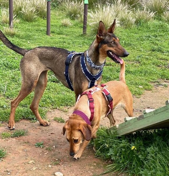 Mia ist sehr loyal. Im Tierheim passt sie gut auf ihre Freundin Noa auf. Wenn wir Noa das Geschirr anlegen, kommt Mia sofort herbeigeeilt, um sicherzustellen, dass wir freundlich sind und alles in Ordnung ist.