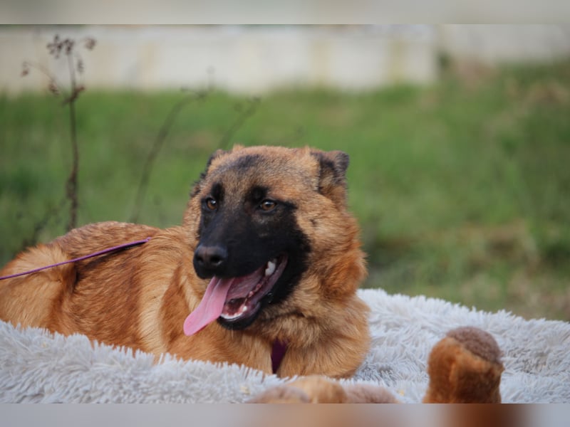 Liebe Zweibeiner! Ich heiße Desina und bin laut Tierarzt im September 2025 geboren. Mit meinen aktuell 50 cm gehöre ich schon jetzt zu den majestätischen Schönheiten und werde auch noch ein ganzes Stück wachsen. Mein Leben bisher war, sagen wir mal, nicht erfüllend. Ich habe in Bosnien gelebt und noch nicht viel Liebe erfahren dürfen. Dennoch bin ich eine liebevolle Hündin mit einer reinen Seele, die der Welt mit Freundlichkeit begegnet. Mit meinen Artgenossen gemeinsam zu spielen und zu toben, liebe ich sehr. Das Leben in der Gruppe macht mich glücklich, aber dennoch bin ich nun umso mehr bereit für mein eigenes Abenteuer mit Euch! Da ich später mal viel Kraft haben werde, suche ich einen Menschen, der weiß, wie man einen Hund wie mich souverän an die Pfote nimmt. Ich wünsche mir eine klare und konsequente Führung, damit ich immer weiß, was Du von mir erwartest. Wenn in Deiner Familie Kinder leben, freue ich mich darüber. Dennoch sollen sie unbedingt schon älter sein und den Umgang mit Hunden kennen, damit sie verständnisvoll und geduldig mit mir sind.