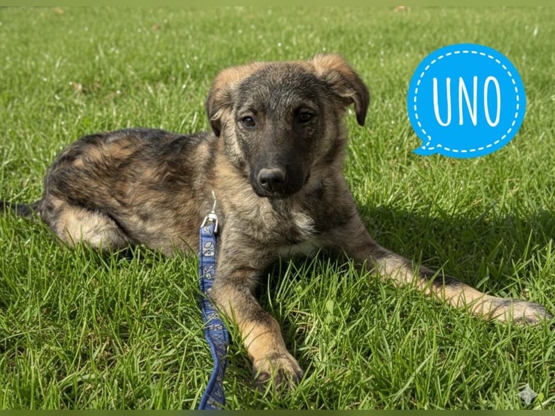Uno ist kein bisschen ängstlich, sondern offen, fröhlich und geht auf jeden Menschen freundlich zu. Er ist ein typisches, verspieltes Hundekind mit guter Portion Lebensfreude.