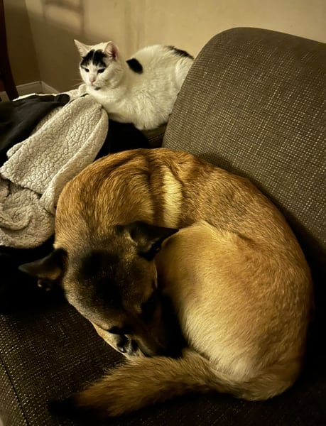 Mit Katzen im Haushalt hat Odin keine Probleme, solange die Zusammenführung langsam und respektvoll erfolgt.