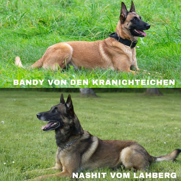 Aus dieser Verpaarung erwarten wir nervenstarke, leistungsfähige Malinois mit ausgeprägtem Trieb, die sowohl im Sport- und Arbeitsbereich als auch auf Ausstellungen erfolgreich sein können.