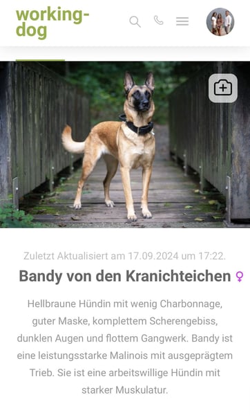 Zitat:Wir züchten leistungsstarke Malinois mit ausgeprägtem Trieb, die sich ideal für Hundesportler und Diensthundeführer eignen. Dabei legen wir großen Wert darauf, dass die Rasse gesund und vital bleibt.
