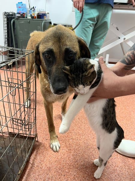 Beim Besuch im Shelter der verlassenen Hunde war unserem Team eine Hündin aufgefallen, die ein Geschwür am Rücken sowie ein seltsames Gebilde am Bauch hatte. Wir entschlossen uns, sie in eine Tierklinik zu bringen, wo sie operiert und die Proben eingeschickt werden konnten. Als wir auf einem Foto entdeckten, dass ihr Kennelgenosse eine Schwellung im Gesicht hatte, wurde er kurzerhand ebenfalls mit auf die Reise geschickt. Dieser Kennelgenosse war Shadow. Shadow hatte eine schlimme und sicherlich äußerst schmerzhafte Entzündung im Ohr. Wie lange der Arme sich schon damit herumquälte wissen wir nicht. Mittlerweile ist Shadows Ohr gut abgeheilt und wir hoffen, dass sich sein ängstliches Verhalten ändert, sobald er schmerzfrei leben kann.
