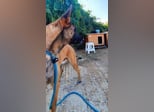 Zorro tauchte Anfang April 2024 zusammen mit einem schwarzen Pitbull mitten in Thessaloniki auf. Ganz offensichtlich wurden die beiden ausgesetzt. Die Gemeinde ließ Zorro impfen und kastrieren. Und eigentlich sollte er danach wieder auf die Straße gesetzt werden. So übernahm Vasso Hatzimanoli Zorro, der dann für einige Monate in einer Tierpension auf ein neues Zuhause wartete. Dann zog er ins Tierheim um.