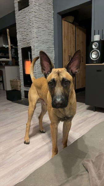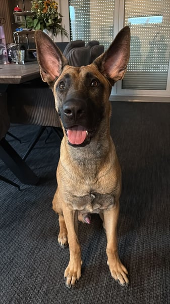 Typisch Malinois zeigt er Zuhause einen guten Schutzinstinkt: Er meldet Fremde zuverlässig und braucht etwas Zeit, um neue Menschen einzuordnen. Bei Unsicherheit kann er bellen oder auch mal ängstlich schnappen – hier braucht er souveräne Führung und klare Strukturen.