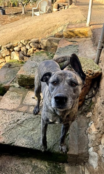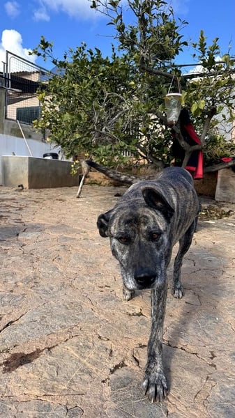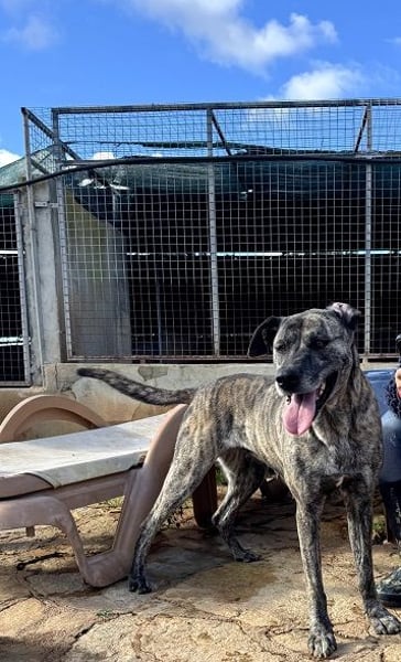 Estrella ist ein liebevolle, anfangs etwas unsichere Hündin, die bestimmt nicht viel Schönes im Leben erleben durfte. Anfangs ist sie sehr vorsichtig, aber wenn man sich zu ihr setzt und ihr zeigt, dass man es gut mit ihr meint, dann kommt sie, genau wie Timon, und freut sich.