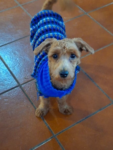 Anfang November 2025 ist Jolly bei einer mit uns befreundeten Tierschützerin gelandet, weil ihn seine ehemalige «Familie» nicht mehr wollte, ihn quasi vor die Tür gesetzt hat. Jollys «Verbrechen»? Er soll seine Geschäfte nicht zuverlässig auf eine ihm in der Wohnung zur Verfügung gestellten Matte verrichtet haben, sondern einfach dort, wo es ihm gerade passte. Daraus schließen wir, dass Jolly wahrscheinlich nicht regelmäßig nach draußen durfte, um seine Geschäfte zu erledigen, dass an seiner Stubenreinheit nicht gearbeitet worden ist (einfach eine Matte hinlegen genügt leider nicht) und auch sonst niemand viel Zeit in seine Erziehung investiert hat. Und dass die Menschen, bei denen Jolly seine ersten Monate verbringen musste, nicht nur ganz allgemein wenig Ahnung von Hunden haben, sondern sich vermutlich keinen Deut darum scheren, welche Bedürfnisse ein Tier haben könnte, abgesehen von Futter. Und die Vermutung, dass diese Menschen Jolly ursprünglich gekauft hatten, weil er ein süßer kleiner Maltipoo ist, ein lebendiges Spielzeug, liegt auf der Hand.