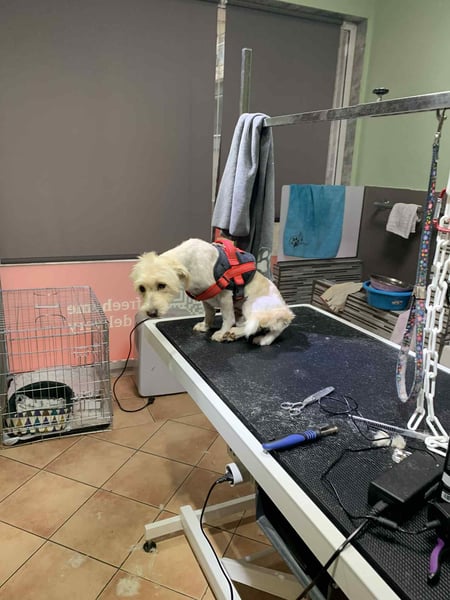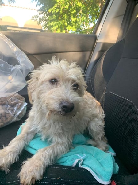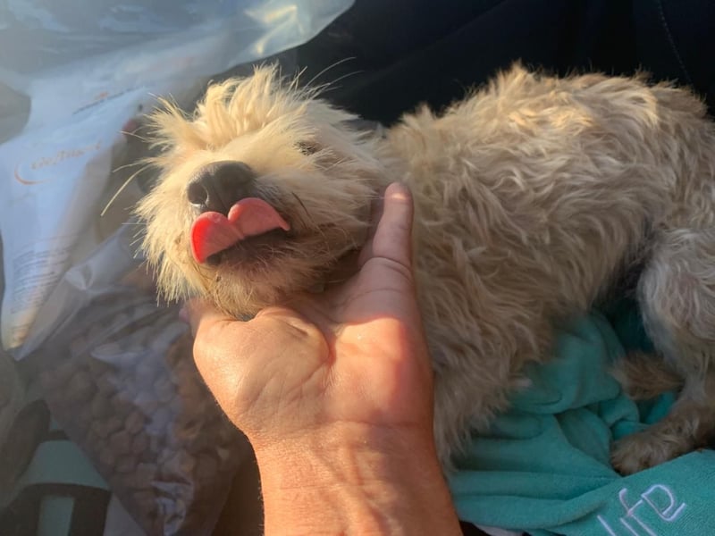 Die liebe Nelly wurde einfach in dem Dorf ausgesetzt, in dem unsere Tierschützerin Maria lebt. Tagelang irrte sie dort hilflos umher – allein, verfilzt und auf der Suche nach Nähe. So eine süße, zutrauliche Hündin konnte natürlich niemandem gleichgültig bleiben. Maria nahm sie kurzerhand bei sich auf, ließ sie beim Hundefriseur von ihrem verfilzten Fell befreien und brachte sie anschließend zum Tierarzt.