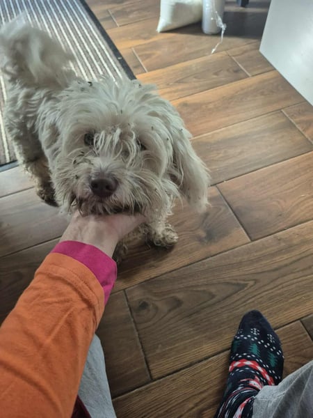 Er ist vermutlich ein Havaneser/Malteser/Bichonmix.