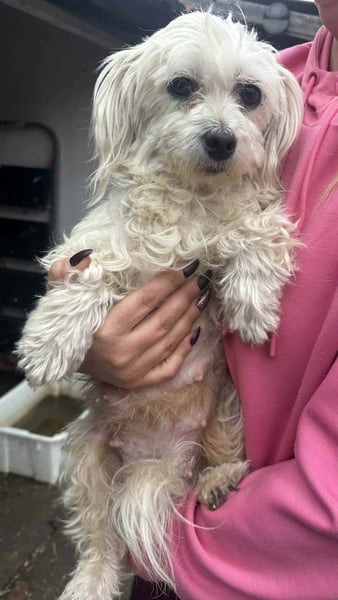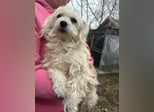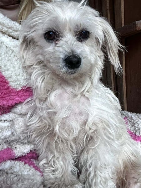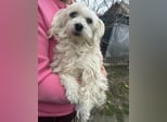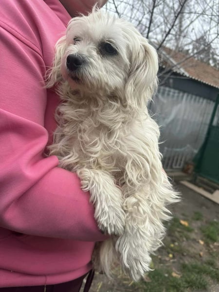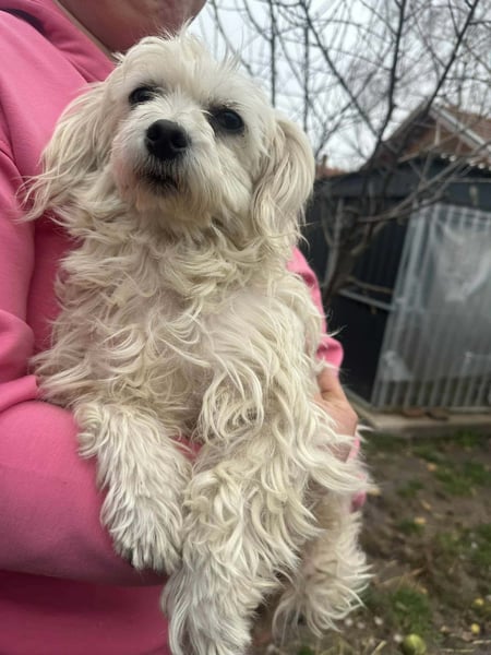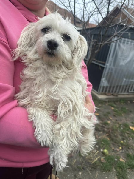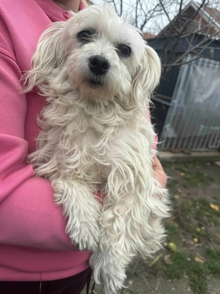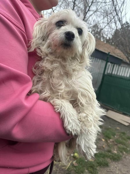 Die zarte Panna, geboren Anfang April 2023, wiegt 7,8 kg und ist eine kleine Malteser-Mischlingshündin mit einem großen Herzen.