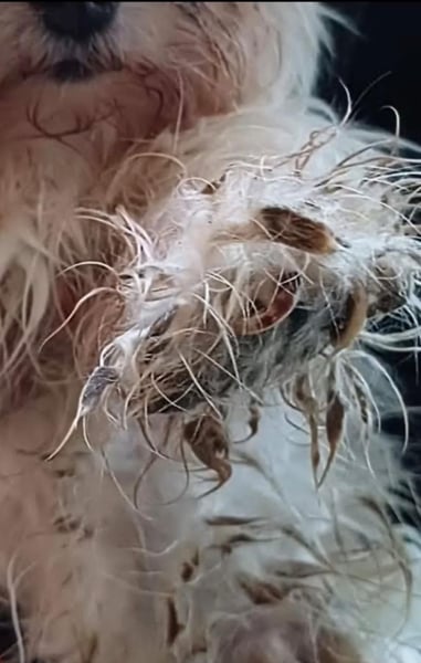 Zu Beginn war der viel zu lange übersehene Rüde in einem sehr schlechten Zustand und die jahrelange Vernachlässigung nicht zu übersehen.