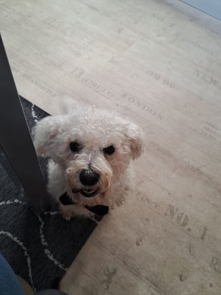 Toto ist fast stubenrein. Nur ab und zu geht mal was daneben. Das muss noch ein bisschen geübt werden.