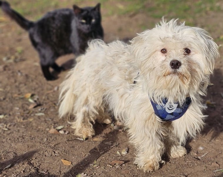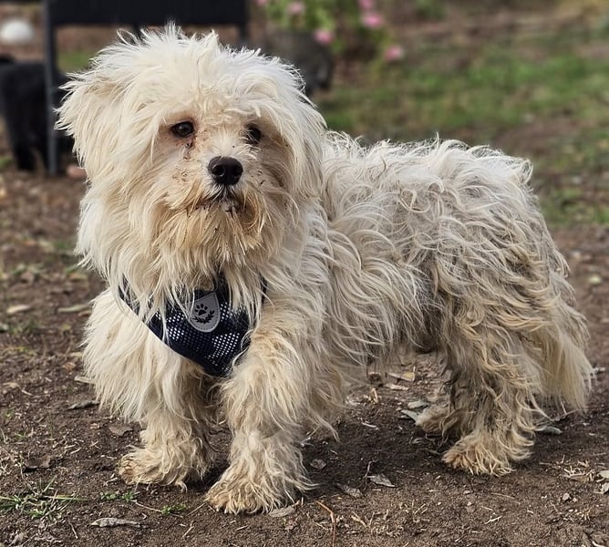 Lior, Rüde, Malteser Mischling, geboren ca. 12. Oktober 2024 (von einem ungarischen Tierarzt geschätzt), reist kastriert, Schulterhöhe: ca. 30 cm und ca. z.Z. 5,5-6,5 Kilo (Hals: 24-28 cm, Brust: 42-47 cm), Vermittlung zu Katzen: ja, wenn diese das Leben mit Hunden kennen. Auf Wunsch wird auch extra nochmals getestet, nur eine Garantie gibt es nicht.