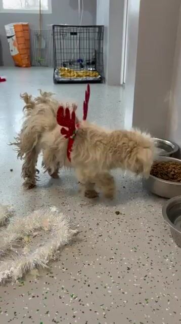 Diese kleine Maus haben wir in Rumänien in einem schlimmen Zustand gefunden. Ihr Fell ist völlig verfilzt. Wir schätzen sie auf ca 2 Jahre und 28cm.