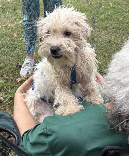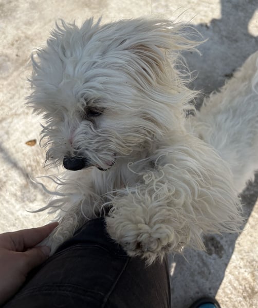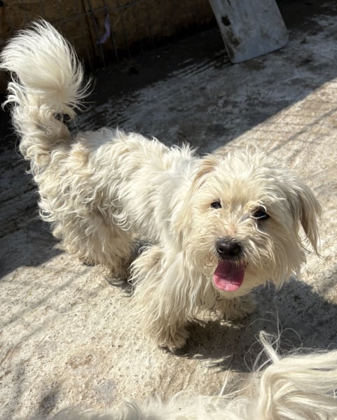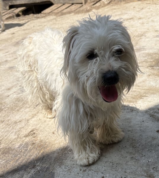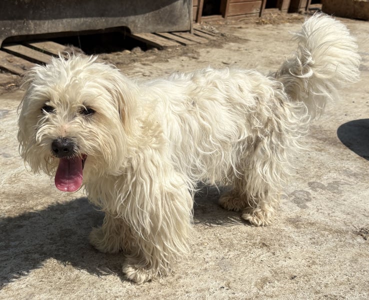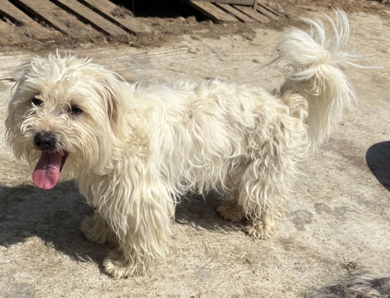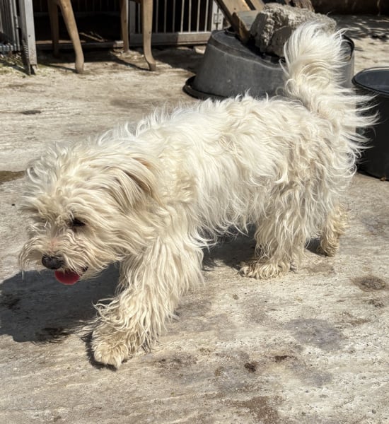Tim, Mischlingsjunge (Malteser, Bichon Frisé?), geboren am 10.04.2024, hat eine Schulterhöhe von 31 cm und wiegt momentan 4 kg. Sein Fell ist momentan auf seiner Pflegestelle eher kurz, wird aber schnell wieder nachwachsen.