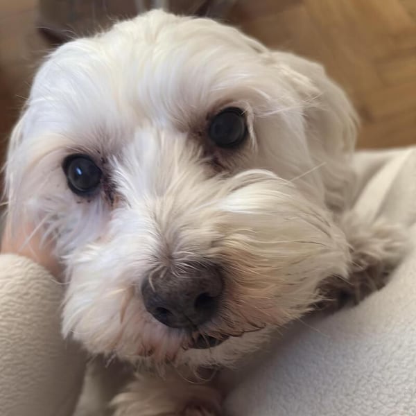 Lilou ist eine kleine Malteser-Mischlingshündin, die aus unserem rumänischen Tierheim Casa Cainelui kommt. Sie ist ca. 5 Jahre alt und 25 cm klein.