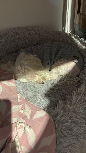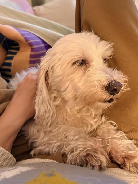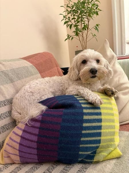 Sie ist ruhig, gelehrig und neugierig auf die Welt. In der Stadt trappelt sie aufmerksam mit, liebt es sich durchzuschnuppern und scheint die Abwechslung sichtlich zu genießen. Im Grünen folgt sie unangeleint sehr brav und hält die Nähe zu ihrer Person. Großen Bewegungsumfang braucht sie generell nicht: Kurze, regelmäßige Spaziergänge, Schnüffelspiele und kleine Trainingseinheiten machen sie zufrieden. Den Rest des Tages döst sie gerne auf dem Sofa. An der Leine ist sie angenehm, Autofahrten meistert sie problemlos, mit Maulkorb fährt sie auch Öffis (am besten auf dem Schoß). Sie kann mehrere Stunden alleine bleiben. Anderen Hunden begegnet sie freundlich und unkompliziert. Sie hat zwar schon im Rudel gelebt, scheint aber nun einen Einzelplatz vorzuziehen, wo sie Menschen und Körbchen für sich hat.