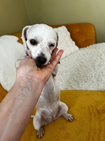 Ich mache viel mit, von Spaziergängen bis zur Hundeschule oder einfach kuscheln auf der Couch. Das Hunde 1x1 muss ich noch lernen bin aber mit Artgenossen verträglich.