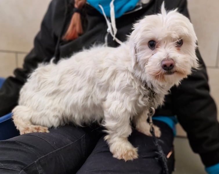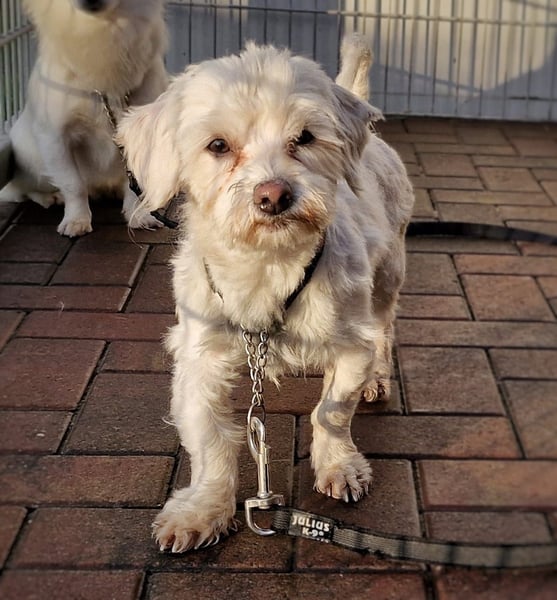 Woodstock geb. Januar 2020 ist ein schüchterner Malteser Mix und stammt aus einer behördlichen Sicherstellung bei der insgesamt 26 Hunde durch das Veterinäramt aufgefunden wurden.