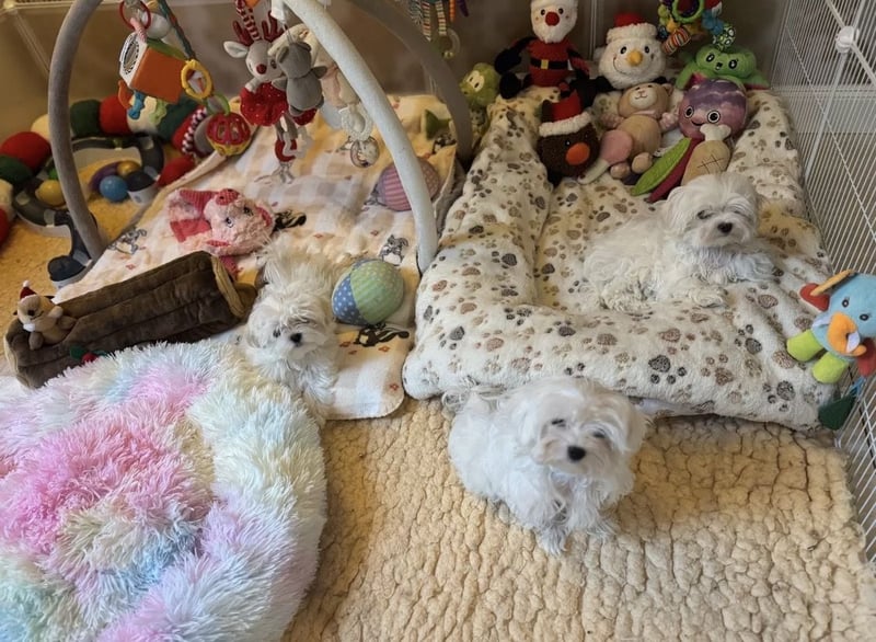 Bei Abgabe ( ab frühestens 12.Woche) sind unsere Welpen entwurmt, gechipt, geimpft und bekommen eine Ahnentafel sowie ein großes Startpaket ( Kuschelnest, Halsband+Leine, Decke, Spielzeug, Futter uvm. ) mit ins neue Heim.