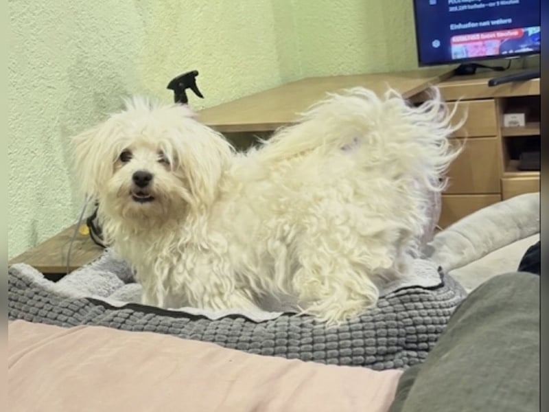Kleiner Nero (vermutlich Bichon Malteser) sucht seine Familie