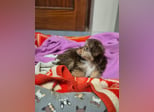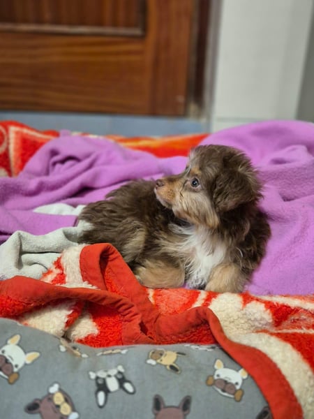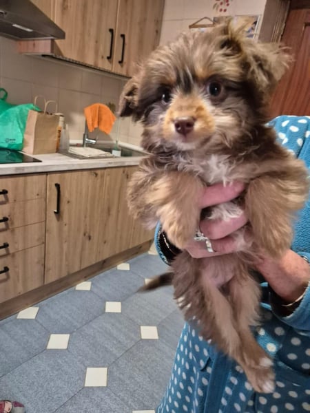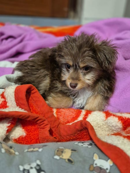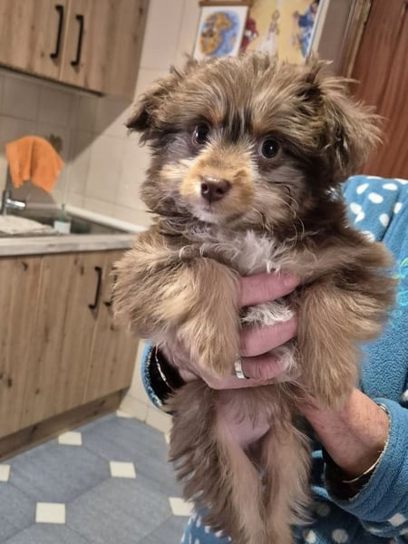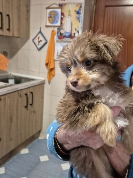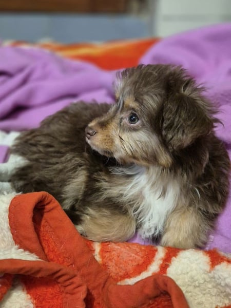 Unser süßer Moka ist ein junger Mischlingsrüde, geboren im September 2025. Mit seinem zarten braun-weißen, leicht langhaarigen Fell und seinem neugierigen Blick, ist er schon ein optisches Zuckerstück.