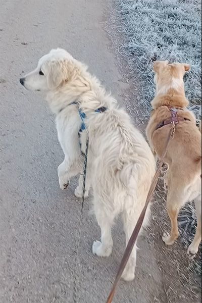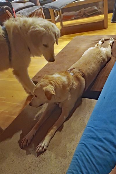 Das geübte Kennerauge weiß, dass Lenny kein Goldie, sondern ein Maremmano-Abruzzen-Mischling ist. Von dem Maremmano kommt gerade noch nicht viel durch, denn Lenny liebt wirklich alles und jeden. Er freut sich über jeden Menschen, liebt seine Katzenschwestern und spielt ganz liebevoll mit ihnen, begrüßt andere, auch fremde Hunde freundlich und geniesst einfach sein Dasein. Seiner Hunde-Tante Blanca ist er ein bisschen zu groß und tapsig, schließlich ist sie schon eine gesetztere Italienerin, aber mit seinen beiden besten Hundefreunden wird abwechselnd getobt, gechillt und geschmust.