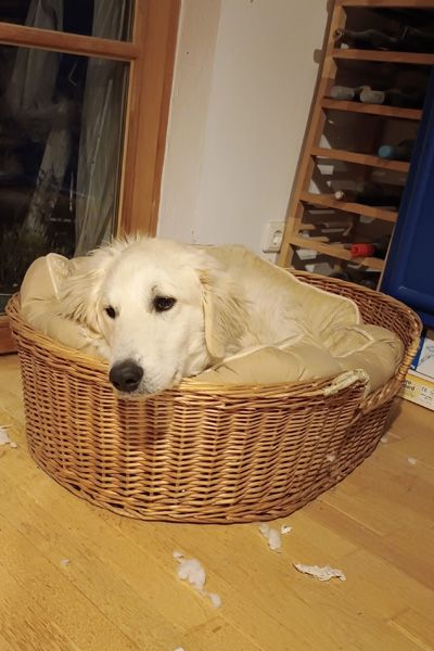 Da Lenny für seine Rasse ja eigentlich noch ein Baby ist, macht er natürlich auch noch ab und an Blödsinn - die Lieblingsschuhe des Pflegepapas klauen, das Altpapier ausräumen ....