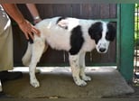 Lambertino hat aktuell, im August 2025, eine Schulterhöhe von rund 50 cm. Ein zusätzlicher Blick auf seine großen Pfoten und der Fall ist klar: Aus Lambertino wird mal ein ziemlich stattlicher Hund werden. So, wie Maremmanen und ihre Mischlinge in der Regel eben aussehen. Lambertino ist zusammen mit seinem Bruder Leofric am 1. Juli 2025 in ein Hundelager gekommen - ob von einer Privatperson gebracht oder von Hundefängern in der Pampa eingefangen, wissen wir nicht. Aber, und auch das könnte klarer nicht sein, in einem Zwinger in einem großen Hundegefängnis sind die beiden Geschwister am komplett falschen Ort.