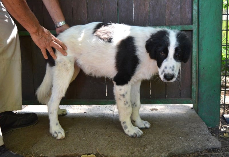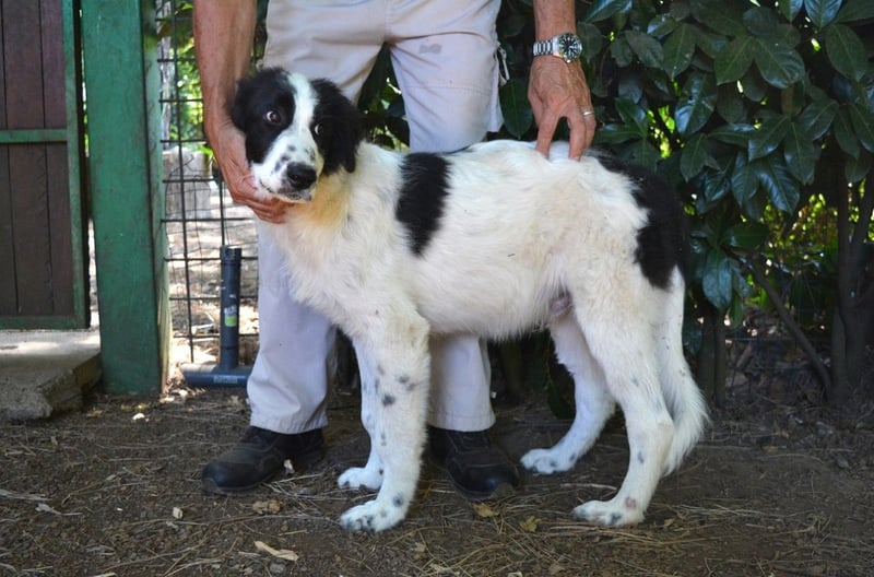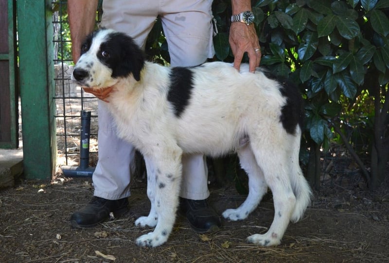 Lambertino hat aktuell, im August 2025, eine Schulterhöhe von rund 50 cm. Ein zusätzlicher Blick auf seine großen Pfoten und der Fall ist klar: Aus Lambertino wird mal ein ziemlich stattlicher Hund werden. So, wie Maremmanen und ihre Mischlinge in der Regel eben aussehen. Lambertino ist zusammen mit seinem Bruder Leofric am 1. Juli 2025 in ein Hundelager gekommen - ob von einer Privatperson gebracht oder von Hundefängern in der Pampa eingefangen, wissen wir nicht. Aber, und auch das könnte klarer nicht sein, in einem Zwinger in einem großen Hundegefängnis sind die beiden Geschwister am komplett falschen Ort.