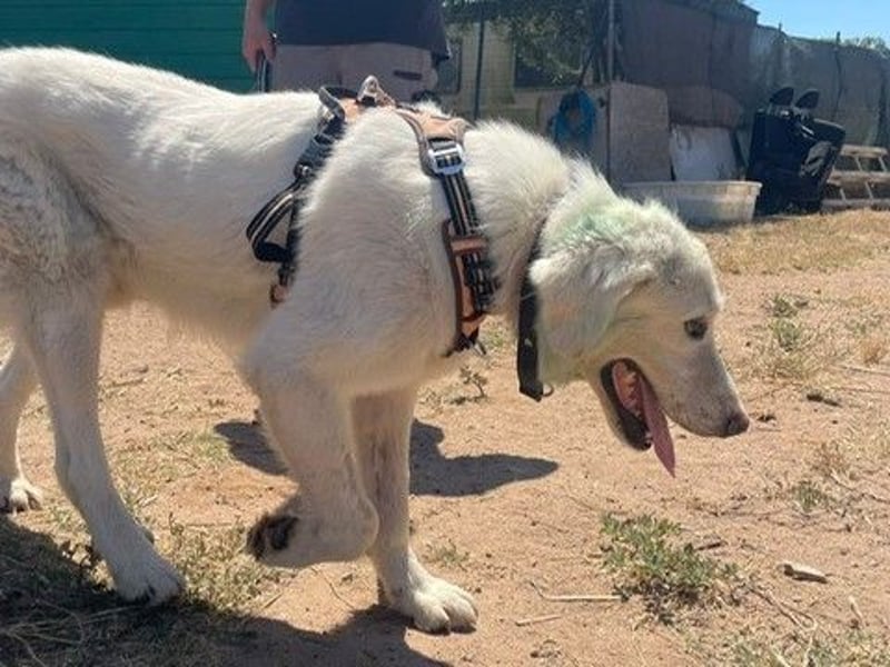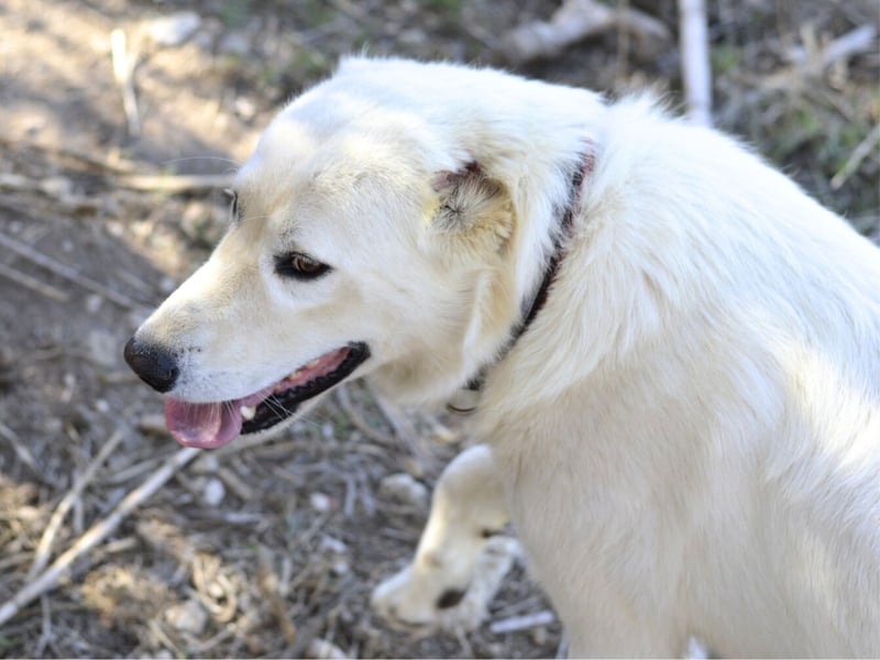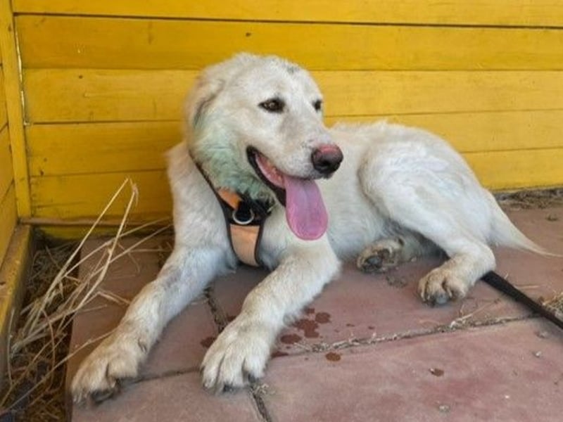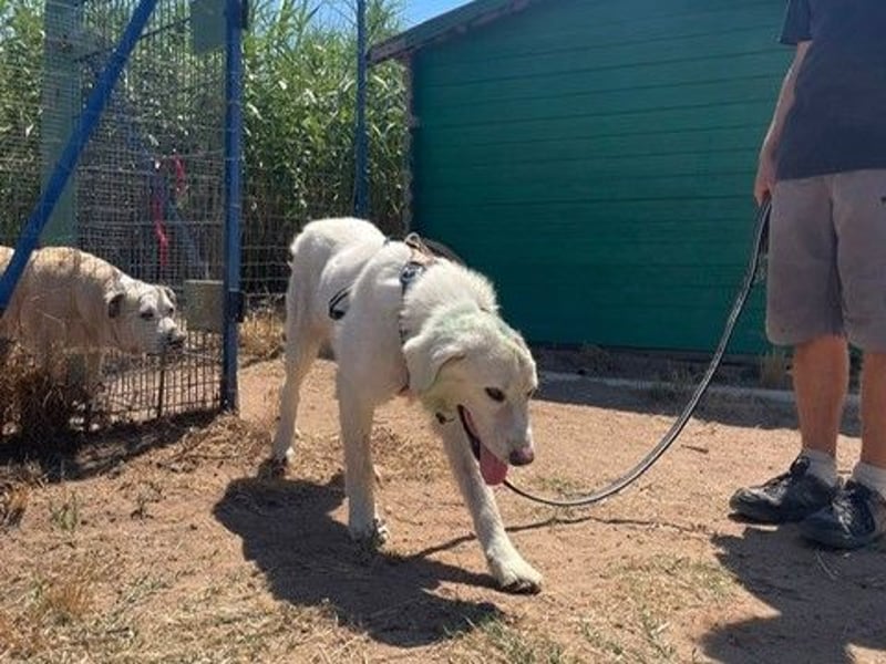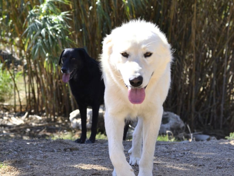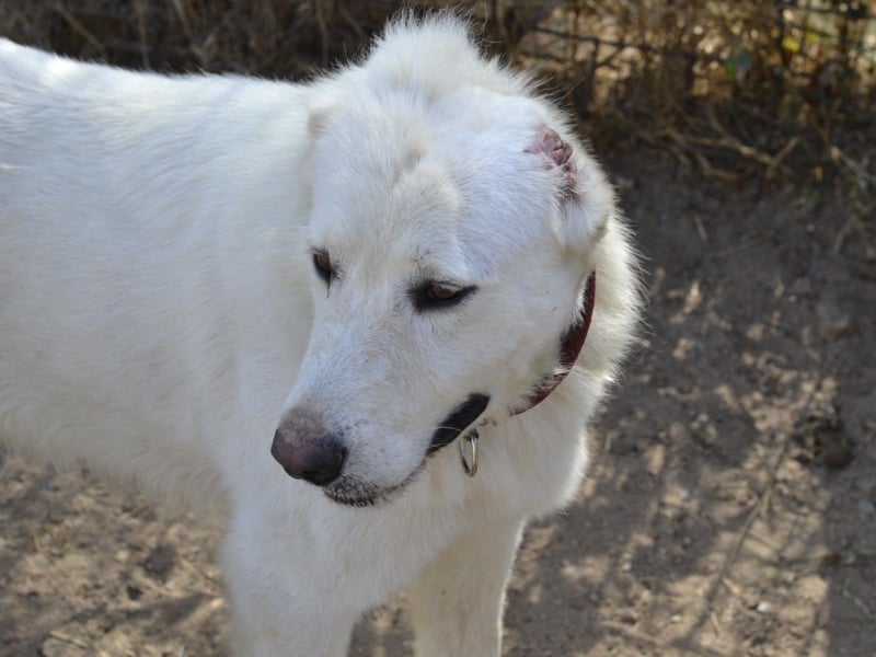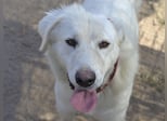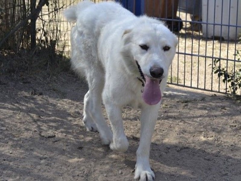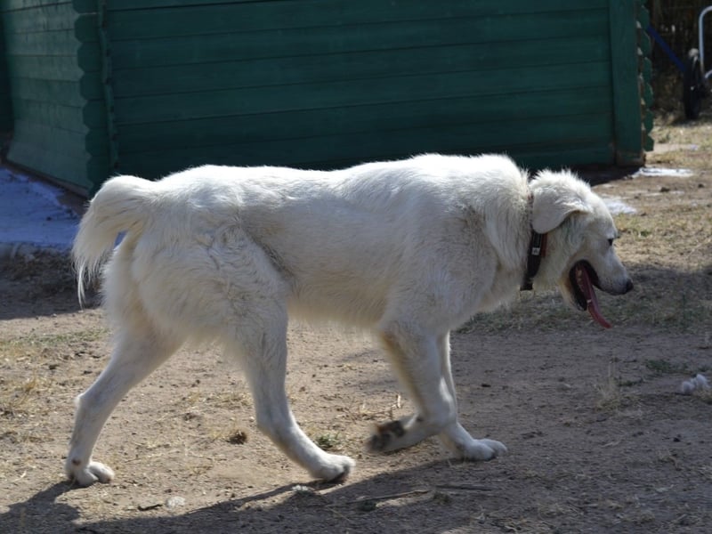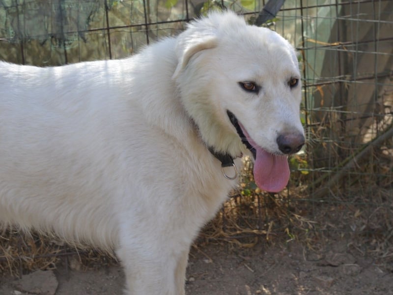 Er ist ein bildhübscher weißer Maremanno-Mischling und hat mit seinen ca 2 Jahren eine stattliche Größe von 66cm.