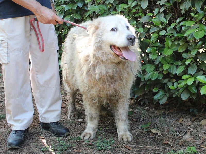 Doch schauen Sie ihn sich an, diesen bildschönen liebenswerten Rüden! Obwohl er schon seit einer gefühlten Ewigkeit (allein in diesem Zwinger sitzt er bereits seit Februar 2023 fest…) alles andere als ein artgerechtes Leben führt, hat Noak sich sein ruhiges, gelassenes Wesen bewahrt. Und auch wenn er als gestandener Maremmano(Mischlings)-Rüde einen eigenen Kopf und auch ein paar Kilo Lebendgewicht mitbringt, war er durchaus bereit sich beim Besuch unserer befreundeten Tierschützer dem Zweibeiner anzuschließen. Er erkundete mit viel Neugier seine Umgebung und fand nach anfänglicher Zurückhaltung sichtlich Gefallen an den Streicheleinheiten.