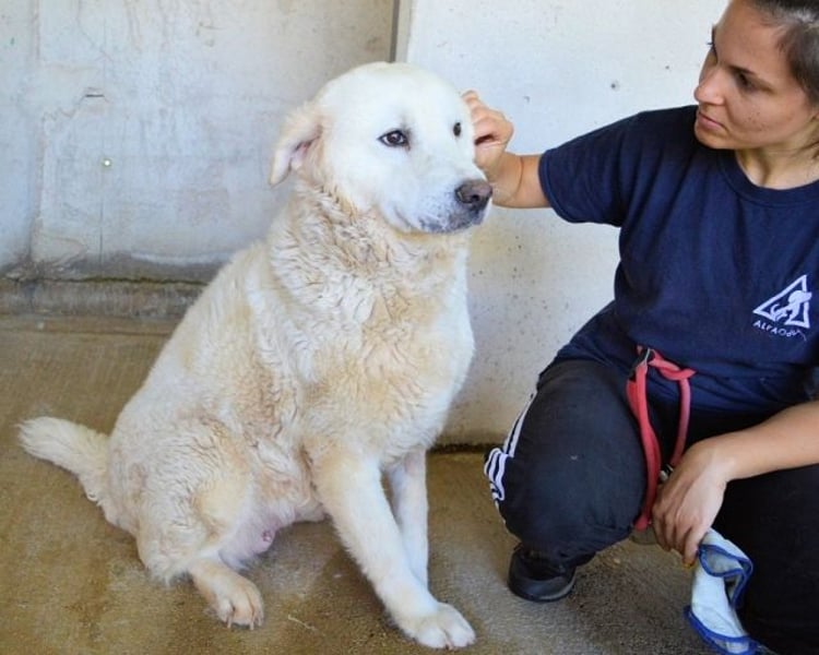 Bereits im ersten Moment des Kontaktes zeigte sich Eskie begeistert und suchte die Nähe. Sie konnte nicht genug Streicheleinheiten bekommen und schmiegte sich an die Tierschützer eng an. Auch ließ sie sich gut die Leine anlegen und folgte willig die paar möglichen Schritte in der Enge des Zwingers. Sehr berührt waren die Tierschützer von der lieben, zugewandten Art von Eskie, so dass sie als eine gute, soziale und mit anderen Hunden verträgliche Hündin beschrieben wurde. Ob sich Eskie auch mit Katzen versteht, konnte leider nicht getestet werden.