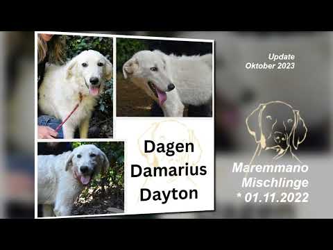 Liebe Menschen, mein Name ist Damarius und ich bin mit meinen fünf Brüdern Dayton, Dagen, Danniel, Darryl und Darell hier in ein Canile gekommen. Das ist ein Ort, an dem Hunde leben müssen, wenn sie keinen eigenen Menschen haben, bei dem sie wohnen können. Wir wissen nicht, wo unsere Mama ist und darum sind wir hier nicht nur eingesperrt, sondern auch ganz allein. Also, wir Brüder sind natürlich zusammen, zum Glück. So lernen wir, wie man sich verhalten muss unter Hunden. Und zusammen schlafen können wir auch, da ist es nicht ganz so kalt, wenn wir uns alle ganz dicht aneinander kuscheln. Aber sonst ist es hier überhaupt nicht schön: nie kommt jemand und spielt mal mit uns und lernen können wir auch nichts. Aber das würden wir gerne. Schließlich wollen wir ja nicht nur (mittel-) groß und stark werden, sondern wir wollen auch lernen, wie man als Hund so in einem Menschenhaushalt zurechtkommt. Darum wollen wir uns alle sechs auf ein schönes Zuhause bewerben. (Natürlich nicht alle zusammen, sondern immer nur einer)