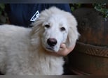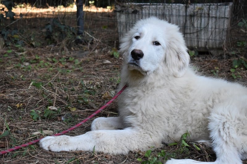 Leofric wird aber mit Sicherheit kein kleiner Löwe bleiben, mit 6 Monaten hat er schon eine Schulterhöhe von 52 cm. Ein zusätzlicher Blick auf die großen Pfoten und der Fall ist klar: Aus Leofric wird mal ein ziemlich stattlicher Hund werden. So, wie Maremmanen und ihre Mischlinge in der Regel eben aussehen. Leofric ist zusammen mit seinem Bruder Lambertino am 1. Juli 2025 in ein Hundelager gekommen - ob von einer Privatperson gebracht oder von Hundefängern in der Pampa eingefangen, wissen wir nicht. Aber, und auch das könnte klarer nicht sein, in einem Zwinger in einem großen Hundegefängnis sind die beiden Geschwister am komplett falschen Ort.