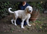 Der niedliche, etwa halbjährige Leofric sieht im Moment, im August 2025, noch aus wie ein kleiner, weißer Löwe: Sein glattes, kurzhaariges Fell im Gesicht kontrastiert mit der buschigen Mähne am Oberkopf (und dem Rest des Körpers). In Kombination mit den (Dis-)Proportionen, wie es bei Welpen und Junghunden üblich ist, ergibt das ein äußerst süßes Päckchen Hund.