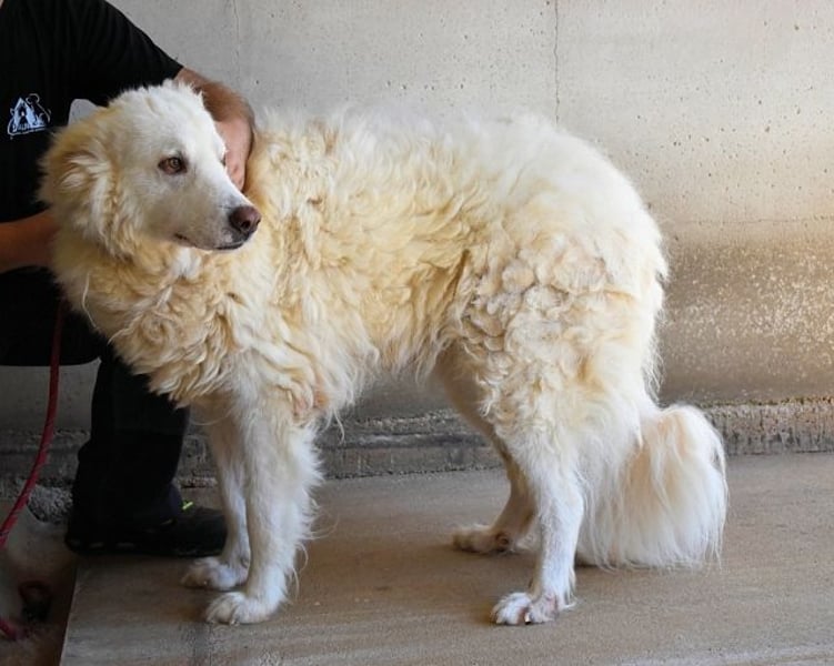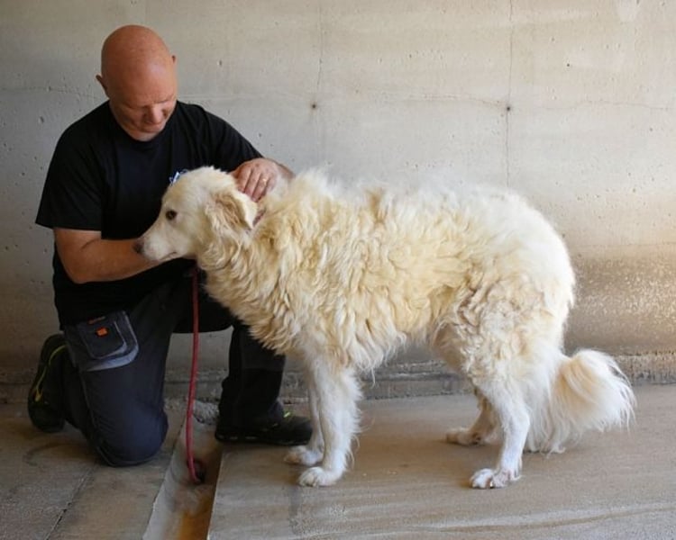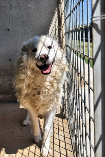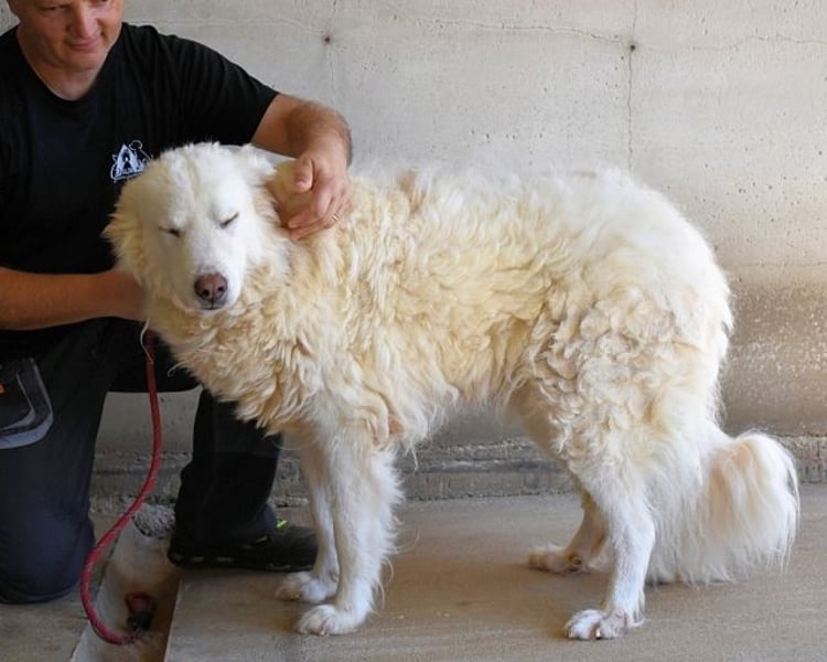 Haigen ist zum Anbeißen, wuschelig und einfach eine zutrauliche, zärtliche Augenweide! Und nicht nur das, er ist ein Maremmano-Mischling, ein Herdenschutzhund. Er kann viel mehr. Er ist in einem Horrorlager, versteckt vor der Welt und ihm wohlwollenden Menschen. Da ist man froh, wenn man entweder herausgeholt wird oder stirbt. Leider wissen wir nicht, ob er aus einer Arbeitslinie stammt oder einfach nur ein recht großer Familienhund ist. Und da er vor dem schrecklichen Hundelager schon ein vierjähriges Leben draußen hatte, ist alles möglich.